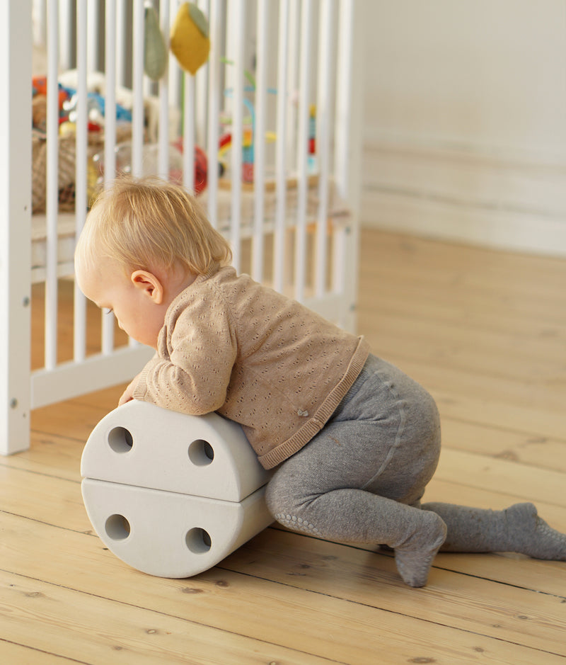 The Roller offers motor skill play for all ages. Do tummy time exercises with your baby. Increase core strength by rolling back and forward. Let older kids sit up straight to practise balance or rock from side to side. You can even combine the blocks to ‘walk the tightrope’ and build fun obstacle courses. When playtime is over, the Roller also works great as a small stool that’s easy for kids to use wherever needed.