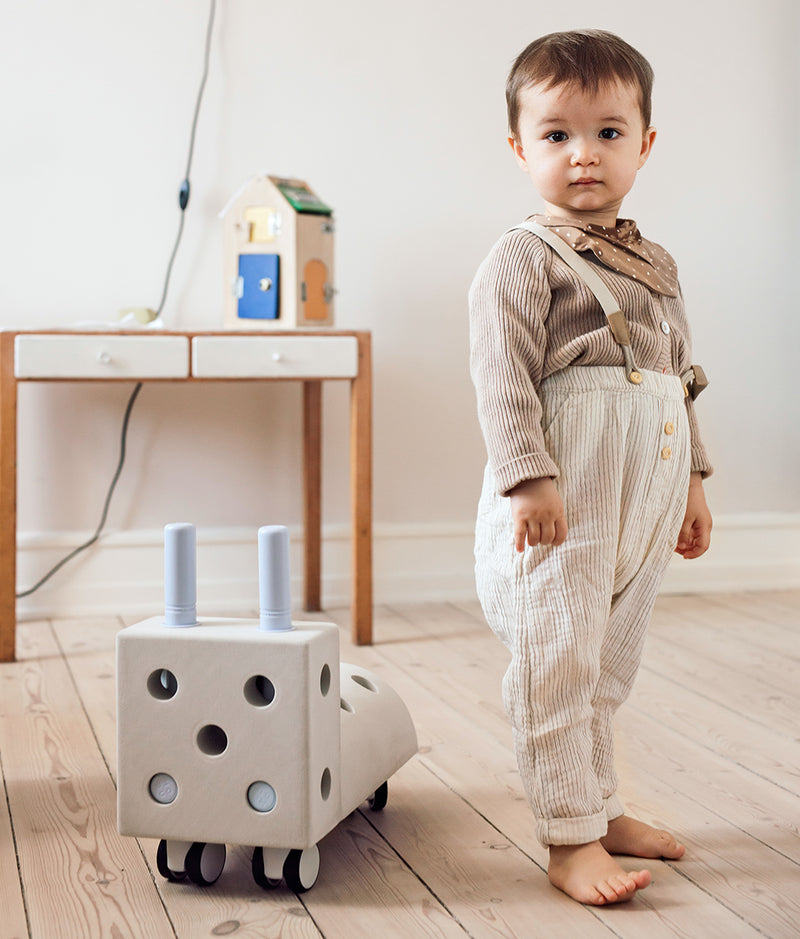 Ready, set, ride! Let your kid enjoy hours of fun and movement while developing essential motor skills with a MODU Tiny Ride. Thanks to its light weight and 360° wheels, this ride-on is super mobile and easy for little ones to drive in any direction they want — a perfect fit for babies and toddlers with the need for speed. The Tiny Ride lets kids use their entire body to steer, spin and scoot around, improving balance, strength and coordination — great practice for balance bikes and bicycles. Modify the ride as your kid grows by adding more MODU blocks or use it as an add-on to your existing collection.