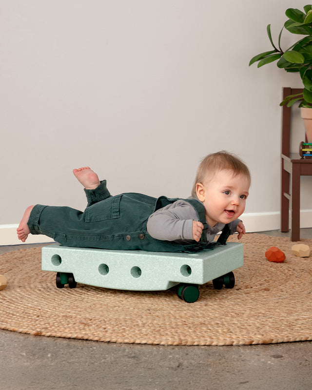 Perfect for tummy time and sensory stimulation, the Scooter Board is a simple yet highly versatile activity toy for practicing basic motor skills with babies and young toddlers. Move the board around, or remove the wheels and rock back and forth. These gentle movements help stimulate the vestibular system, a key part of developing balance and body awareness — and it’s fun!