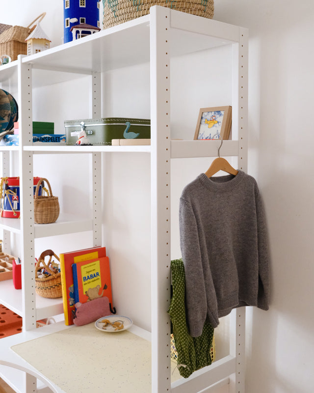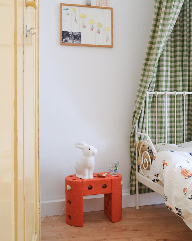 Since we have quite a few tall cabinets in the kids' room, we love building steps with MODU to help them reach things more easily. Right now, my favorite creation is a little shelf made from the new balance set. It’s sitting under the small coat rack in the hallway outside the kids’ room and works perfectly as a shoe rack and storage, plus it helps the kids with getting dressed on their own. And of course, the all-time favorite for our youngest is the table and chairs—he’s always sitting there drawing or "inviting" us to join him for a little meal.