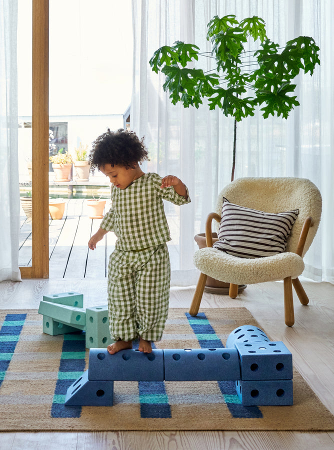 Obstacle courses offer endless fun and variety for children of all ages. Use the MODU Blocks as stepping stones and explore the individual shapes – some are stable while others wobble and rock depending on how you place them on the floor.