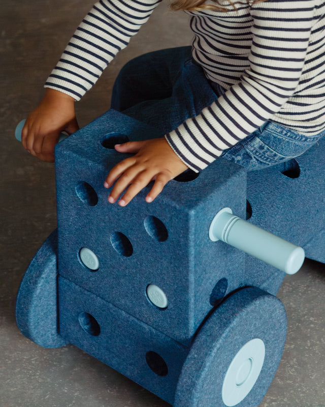 The MODU Tiny Ride is a perfect fit for young toddlers with a need for speed. With 360° movement and floor-protecting rubber, your little one can swirl around all day. If you need something that's a bit more beginner-friendly, use the MODU Foam Wheels. The large wheels provide good stability and help your child gain a sense of speed and balance. Cruising around indoors is great practice for when the time comes for them to learn how to use a balance bike or ride a real bike.