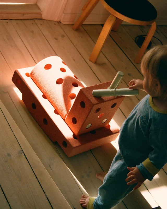 Transform the living room into a racetrack or build a play kitchen to encourage your toddler to experiment and create imaginative – and definitely tasteful – scenarios. You can even build a catapult and join them on the adventure to rescue the princess from the flaming dragon. With the MODU Dreamer Set, you can build more than 25 unique life-sized toys and creations. The set is perfect for sharing among siblings and great if you want to enjoy endless creative possibilities!