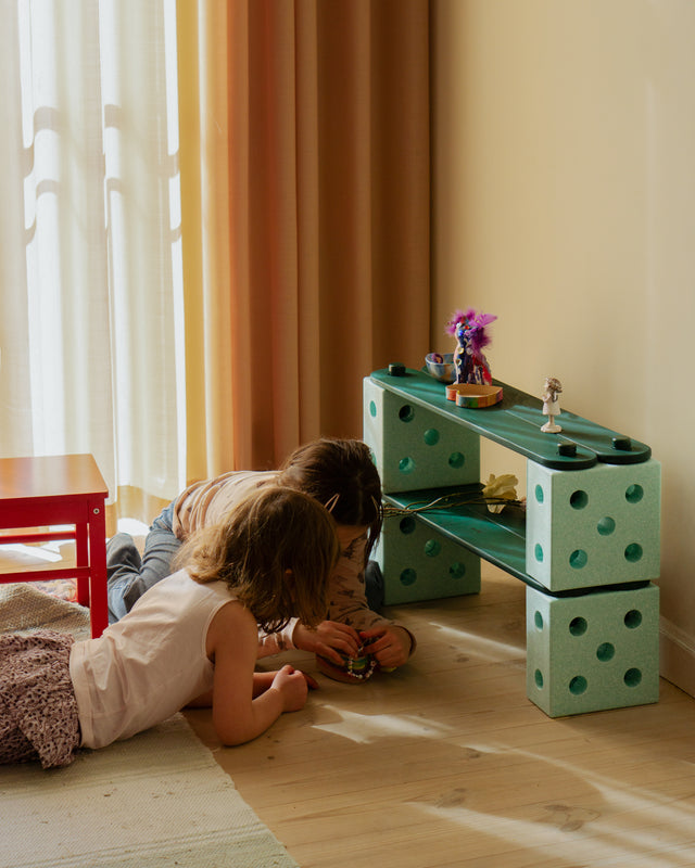 And then, of course, I love the functional aspect. Just this morning, we built a play kitchen that’s now standing in our actual kitchen, but it serves a different purpose in the kids’ room. The fact that you can move MODU around the home and adapt it to different needs, that’s just such a great concept.