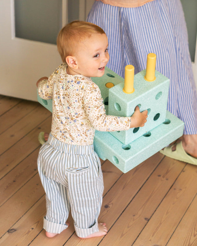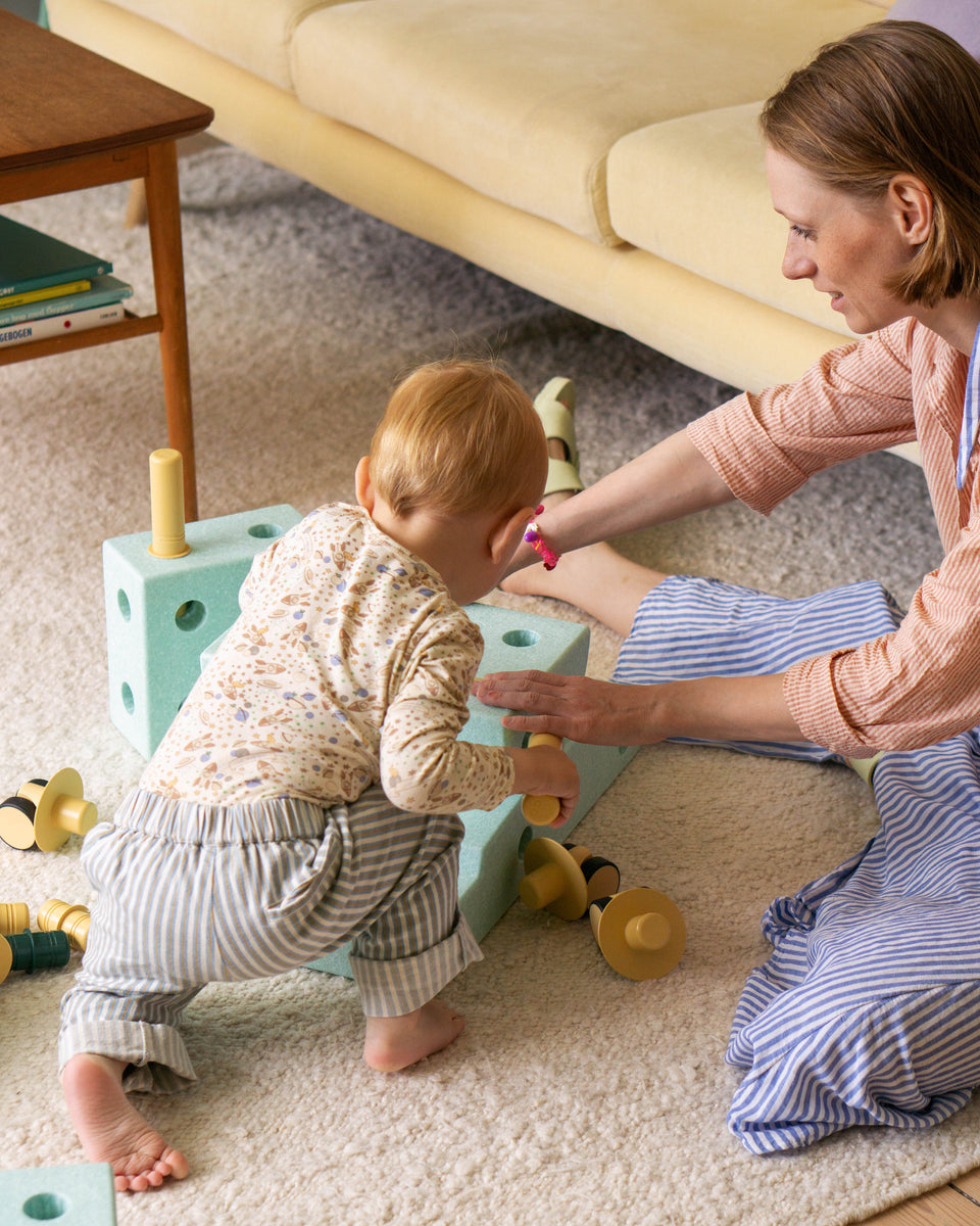 He's at a stage now where he really enjoys building in his own way, just placing the connector pegs in random places while singing the kids' song ‘Building Myself a Car’ — so cute. I actually built a little car for him at some point, when he was still a little too young to use it. Then suddenly, a few months later, he was driving around all by himself. Seeing that development has been really fun.