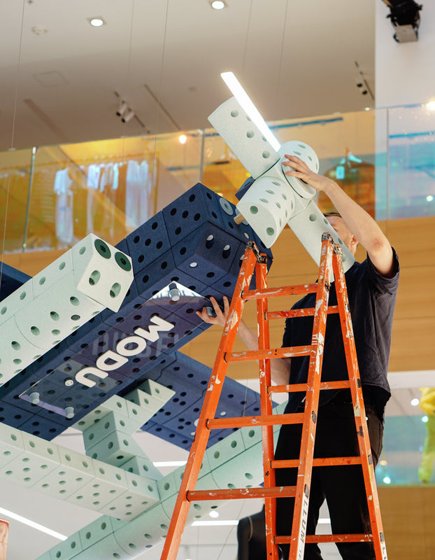 The buzz in our office has transformed into a reality far beyond our wildest dreams. Introducing the MODU Seaplane, a testament to innovation and playful design. With a staggering 4.5-meter wingspan, this installation is our largest and most ambitious project to date, perfectly timed with the opening of the new kids' department at ILLUM.