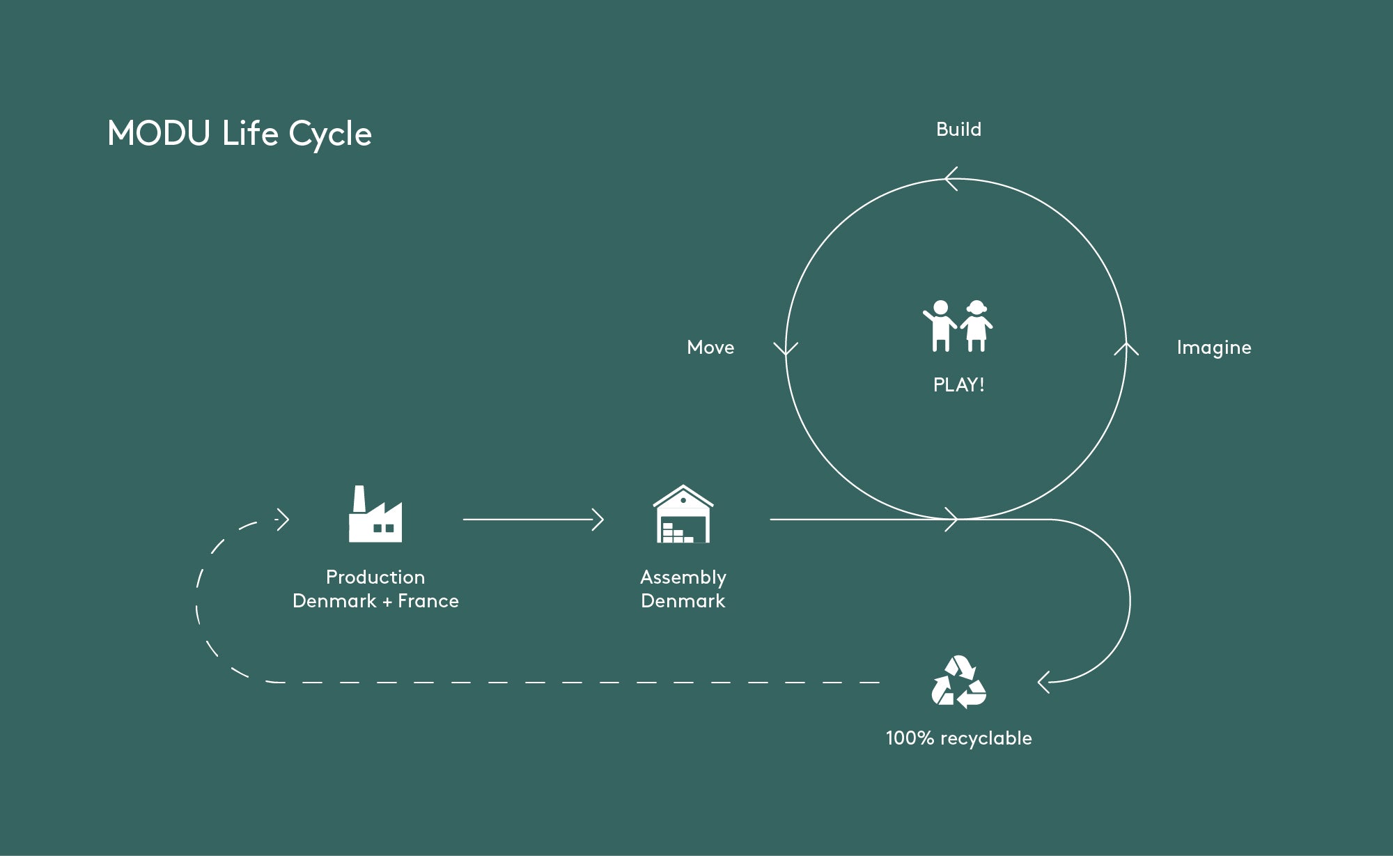 As a modular, scalable system, the functionalities of MODU can always be further developed. When one creation is outgrown, or a fun idea emerges, new creations are easily built. We like to describe it as the MODU play loop, and it is an integral part of our approach to sustainability and our circular mindset: