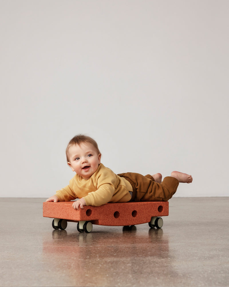 This MODU Scooter Board is a simple yet versatile toy for practicing basic motor skills with your baby or toddler. Use it for tummy time and move the board around, or remove the wheels and rock back and forth. Even simple movements and sensory stimulation can bring a smile to a baby’s face — and the fun has just begun! As your kids grow, let them enjoy the freedom of spinning around on their own, using their entire body. Remove the wheels and you’ve got yourself a balance board or combine with the rest of the MODU system to build more advanced creations.
